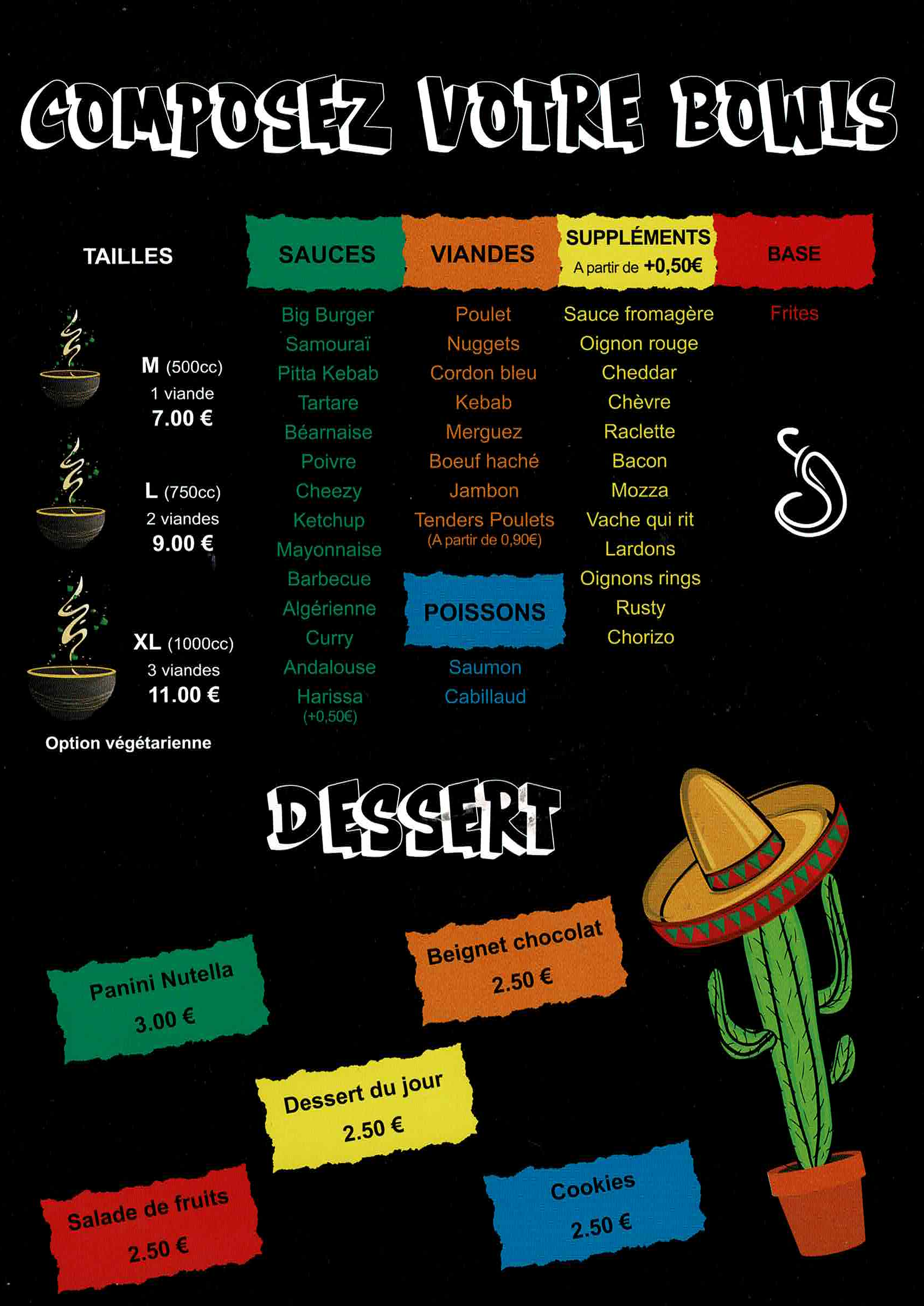 Nos bowls disponibles en cinq variantes proposent une explosion de saveurs et de textures alliant fraîcheur et gourmandise. Que vous optiez pour un bowl au poulet, au saumon, végétarien ou autre, chaque bouchée est une invitation à savourer.